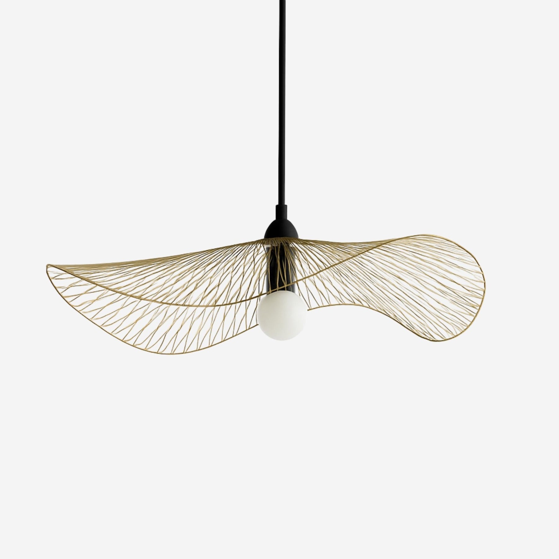 Tillverkad av hållbara material och designad för långvarig användning. Den eleganta, böljande formen ger ett lätt och svävande uttryck som gör sig perfekt över matbordet, i vardagsrummet eller som en dekorativ ljuskälla i en lounge- eller restaurangmiljö.