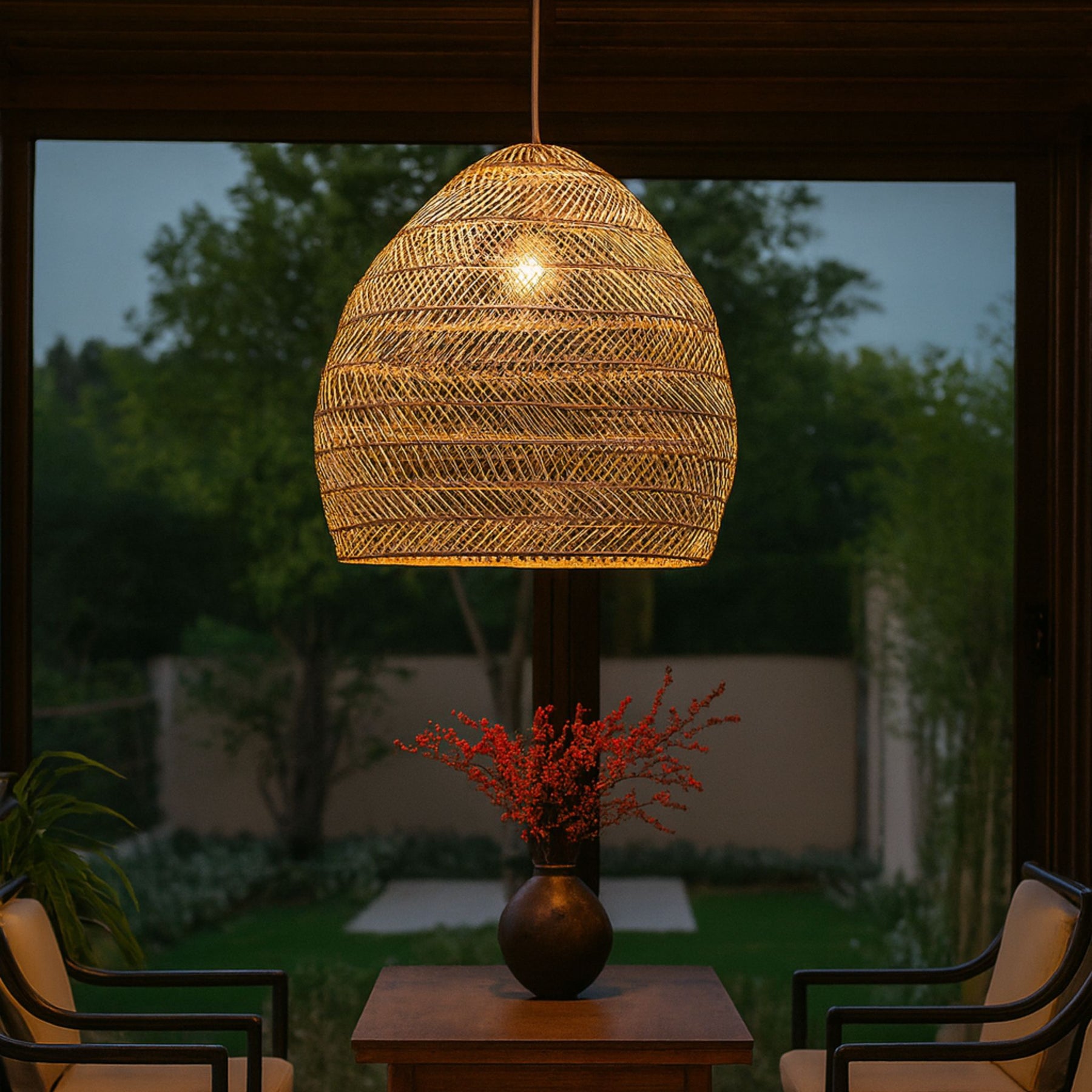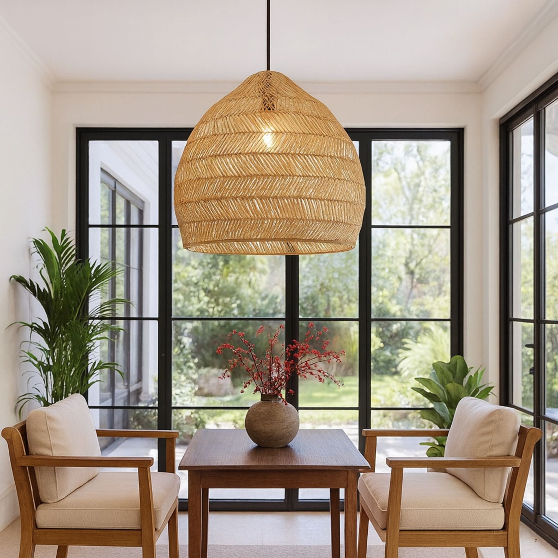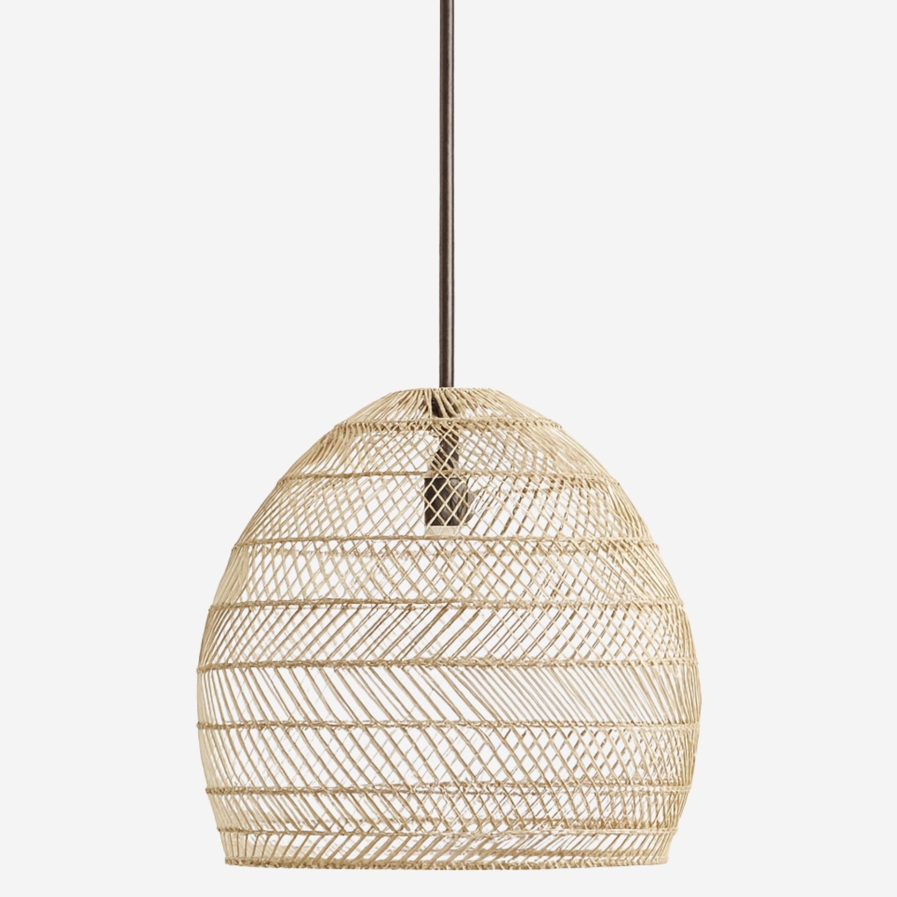 Zenith är en taklampa som kombinerar modern design med naturmaterial. Den handflatade skärmen i rotting ger en stilren belysning och skapar en balanserad ljusfördelning som gör sig lika bra i kök, vardagsrum eller sovrum.