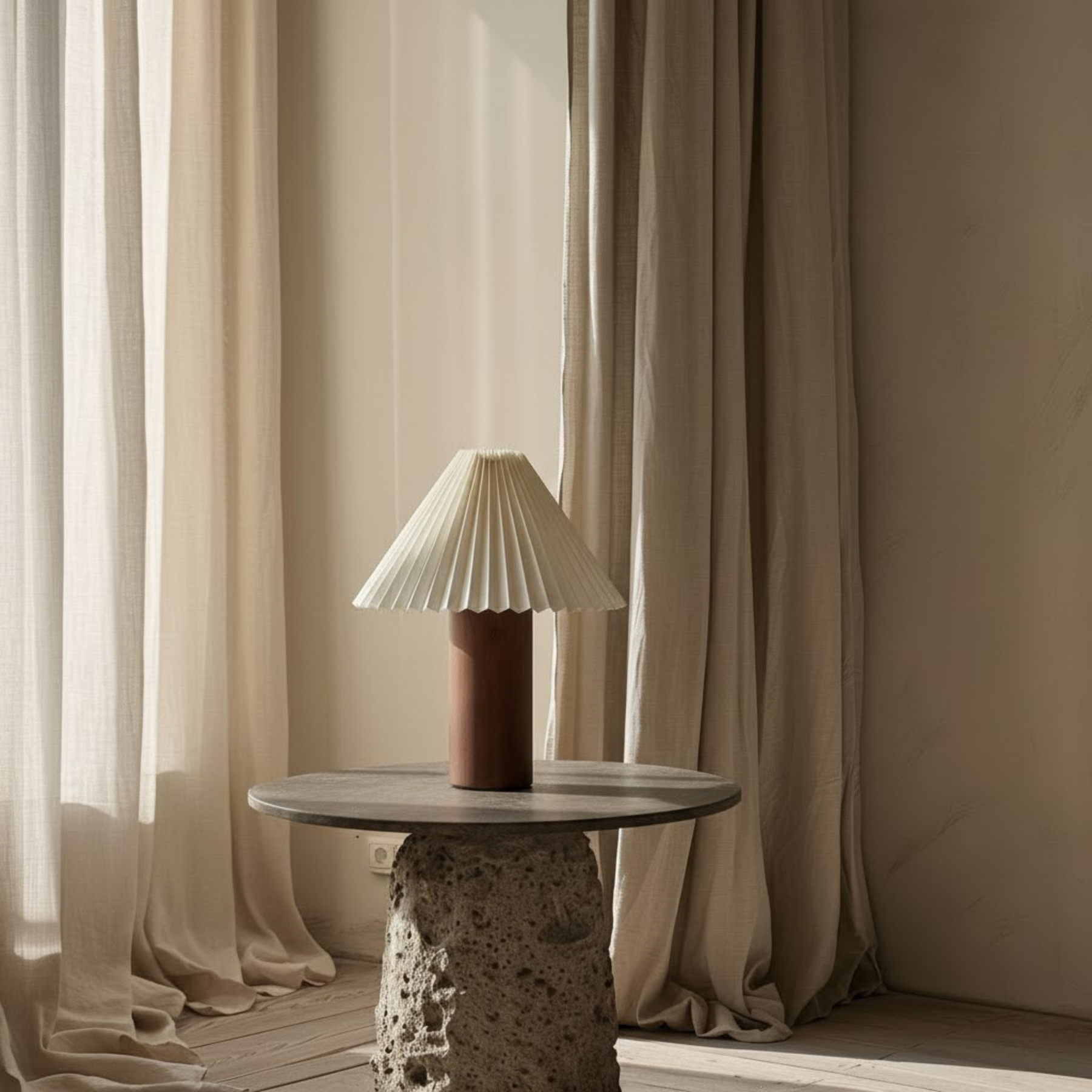 Cask kombinerar naturlig värme med modern skandinavisk design. Den cylindriska foten i mörkbetsat trä skapar en gedigen och harmonisk känsla, medan den veckade lampskärmen i ljus textil sprider ett mjukt och behagligt sken. Med sitt stilrena formspråk blir Cask en tidlös detalj som passar lika bra i vardagsrummet som på sängbordet eller i hallen.