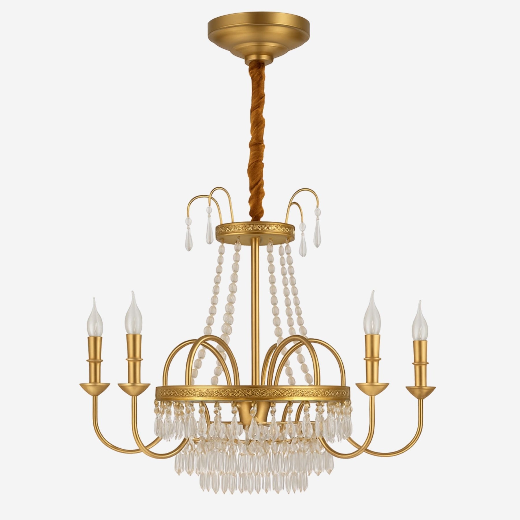 Ljuskronan - Empire 5 är en kristallkrona som ger ditt hem en exklusiv känsla och ett stilrent uttryck. Den detaljerade designen med gnistrande kristaller och mässingsfinish skapar en elegant belysning som passar perfekt i vardagsrum, matsal eller entré.