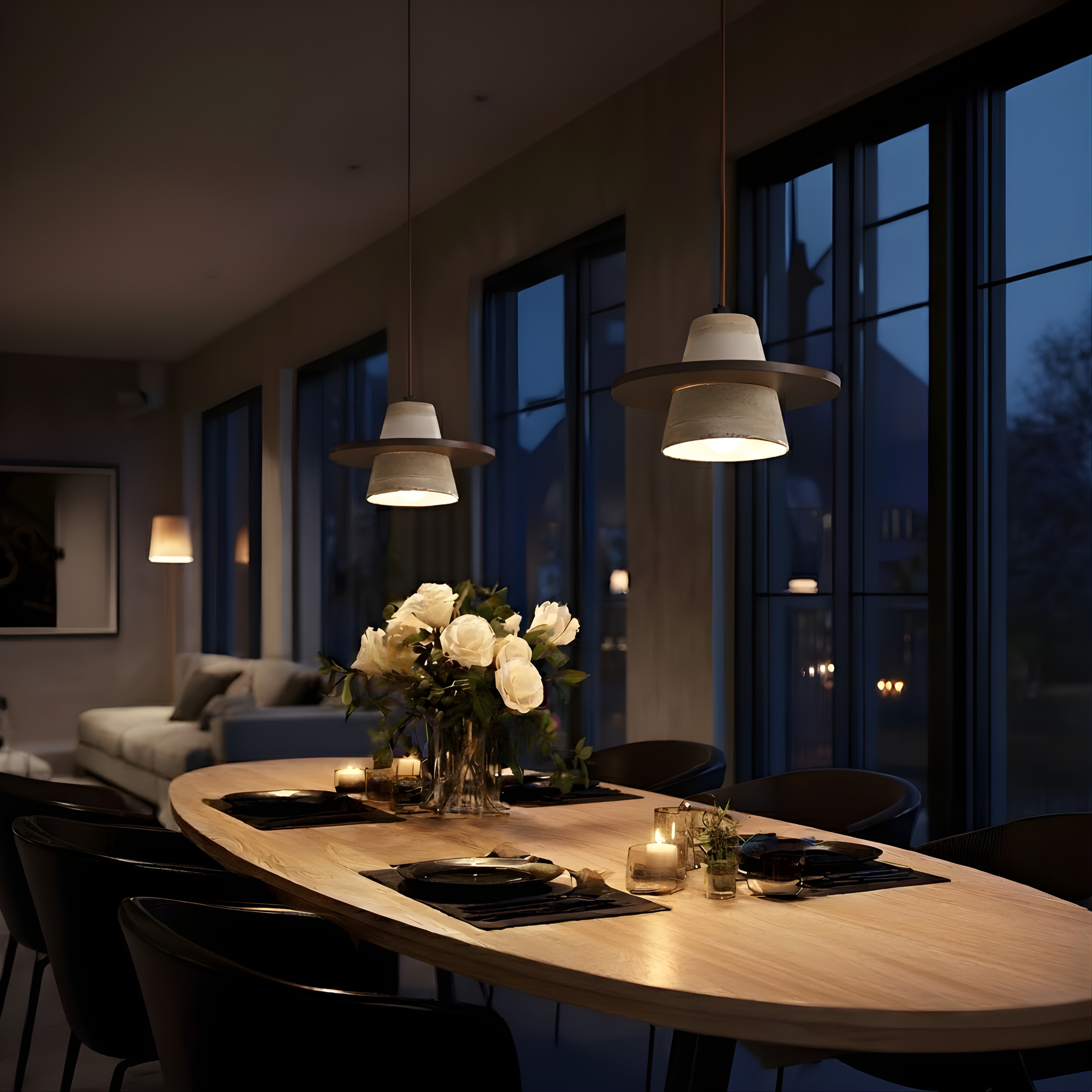 Lampan har en justerbar upphängning som gör det enkelt att anpassa höjden efter rummets behov. En belysningslösning som förenar naturens råa skönhet med modern funktionalitet.