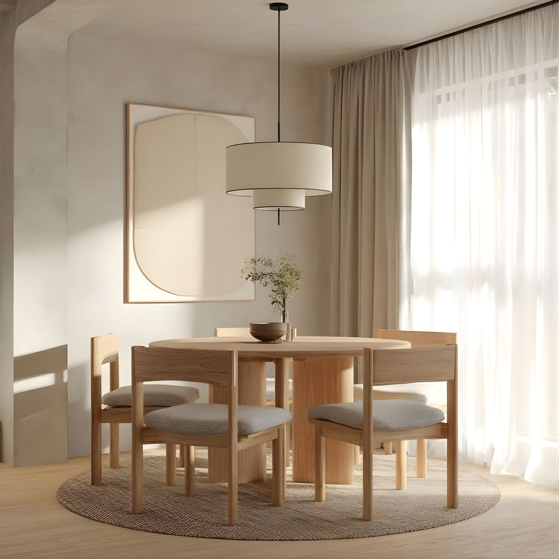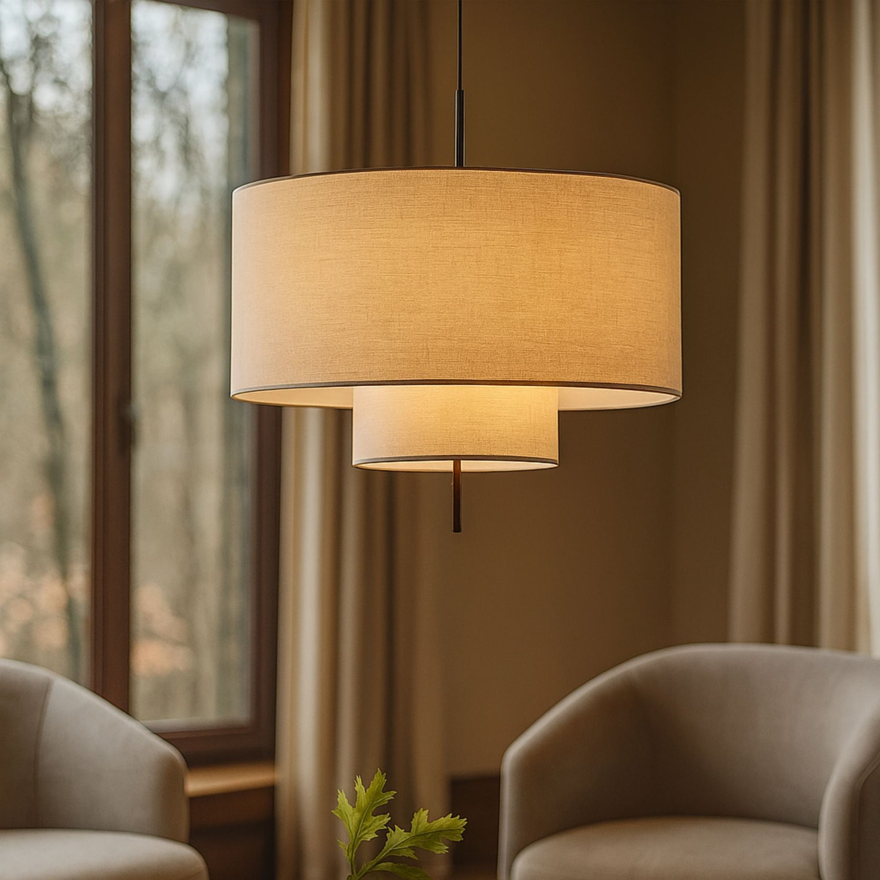 Tambour är taklampan som kombinerar tidlös elegans med nutida uttryck. Den cylinderformade textilskärmen i varm naturton ger ett mjukt, jämnt ljus som passar perfekt över matbordet, i vardagsrummet eller sovrummet.