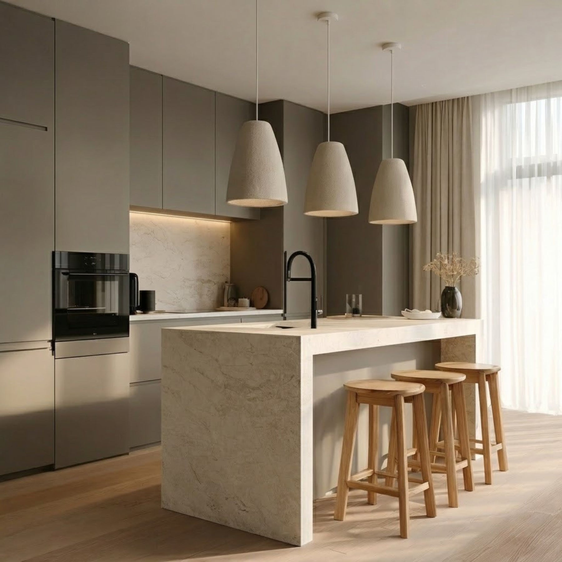 Cirrus Cone taklampa Ø35 cm - Sandfärgad pendellampa i japandi stil