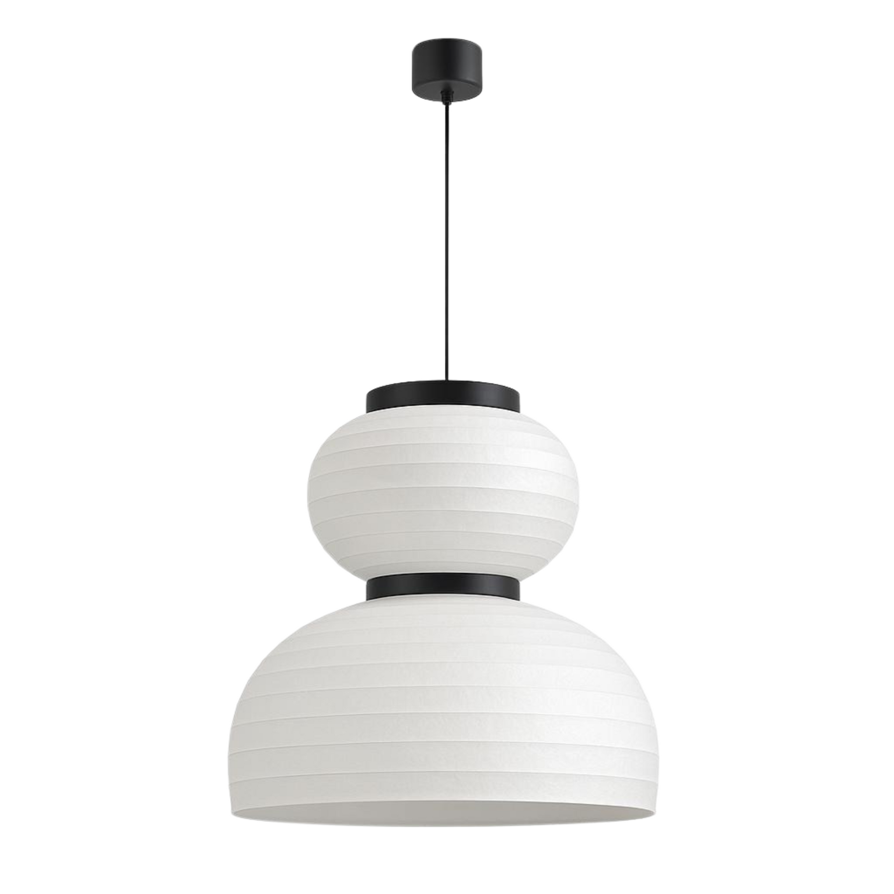 Taklampa Podium har en skulptural tvådelad skärm i cacoon-material som sprider ett mjukt, stämningsfullt ljus. En stilren design inspirerad av japansk minimalism – perfekt som blickfång i hemmet.